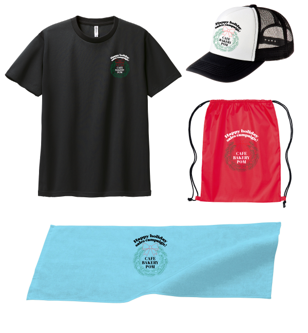 オリジナルTシャツ・オリジナルキャップ・タオル・バッグなど様々なアイテムでオリジナルグッズが作成できます。