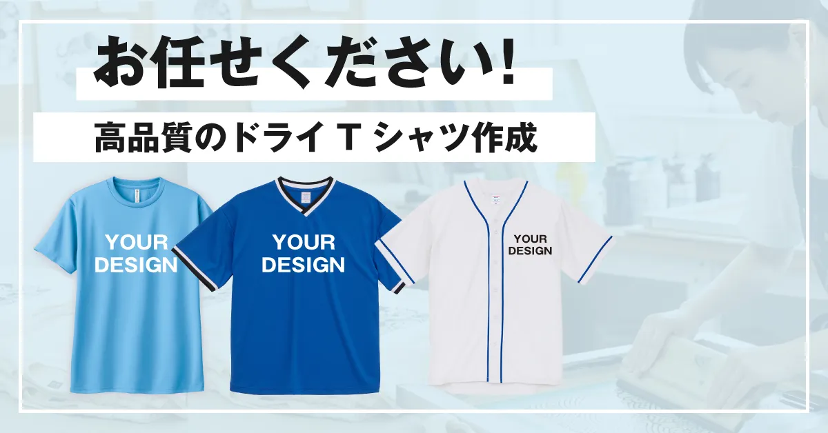 高品質なのに低いコストで作れるオリジナルドライTシャツ作成ならツクレルにお任せください。かんたんに描いた手書きの原稿をお送りいただければツクレルのデザイナーがグラフィックデザインを作成します。ドライ素材はチームお揃いのTシャツやイベント用のスタッフTシャツ、ノベルティや販売用など様々な用途で人気の商品です。プリントは日本国内の工場で印刷しているので品質・納期保証もお任せください。最短翌日発送!写真やフルカラーデザインも激安で印刷作成。
