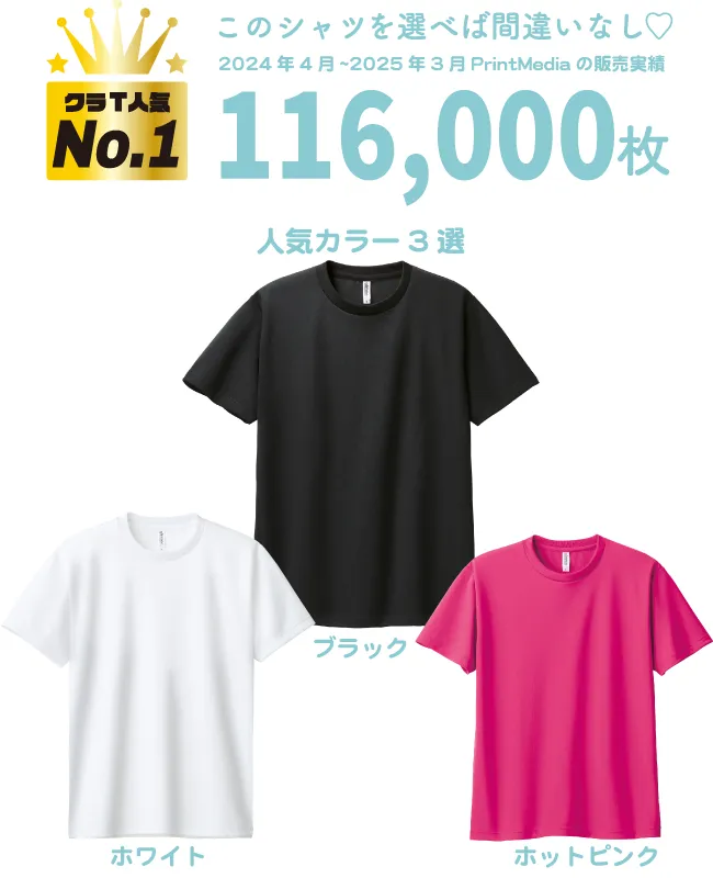 ★人気No.1のドライTシャツ★ポリエステル100%仕様で軽く、速乾性に優れたドライ素材のTシャツ。